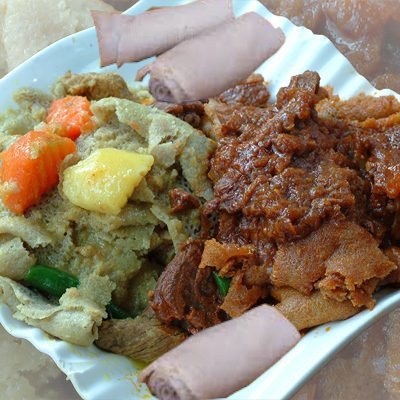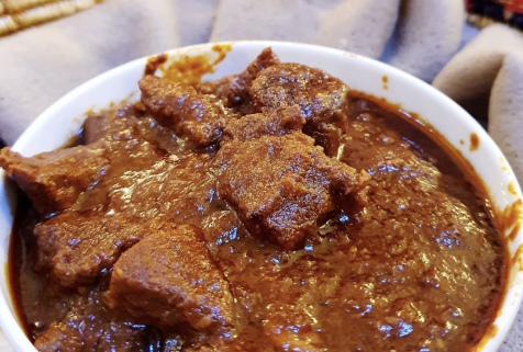 Concentrated sauté of onion, tomato sauce, garlic, ginger, and mixed spice with or without beef stuffed with fresh ïnjära